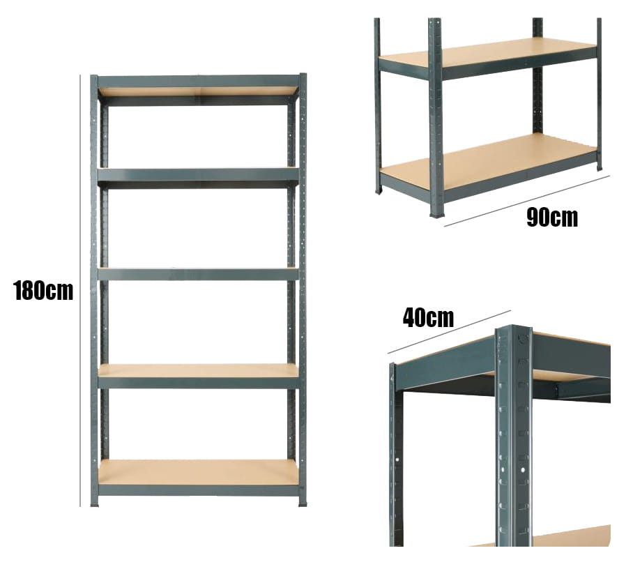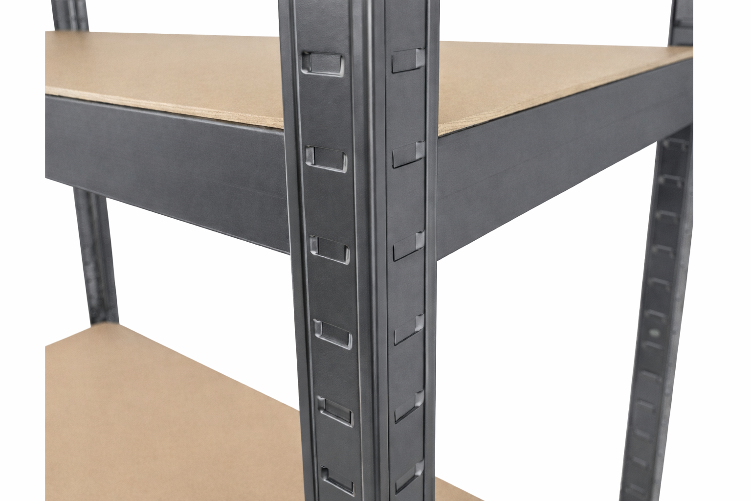 ➡️ Solidne półki o wymiarach 40x90 cm są w stanie udźwignąć łącznie aż 875 kg, co czyni ten model idealnym rozwiązaniem do intensywnego użytkowania w warunkach magazynowych, garażowych czy warsztatowych.