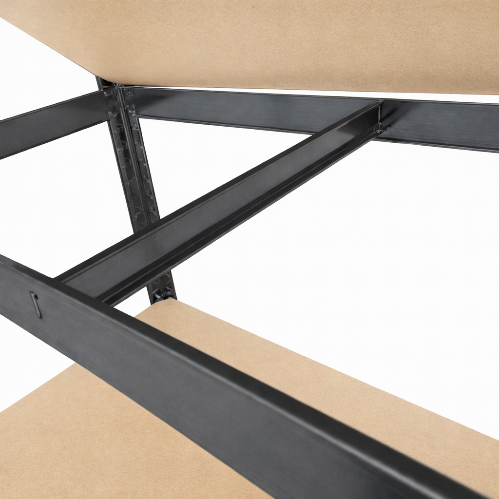 ➡️ Dzięki przemyślanej konstrukcji bez użycia śrub oraz zastosowaniu dodatkowych wsporników wzmacniających, regał zapewnia maksymalną stabilność i bezpieczeństwo użytkowania.