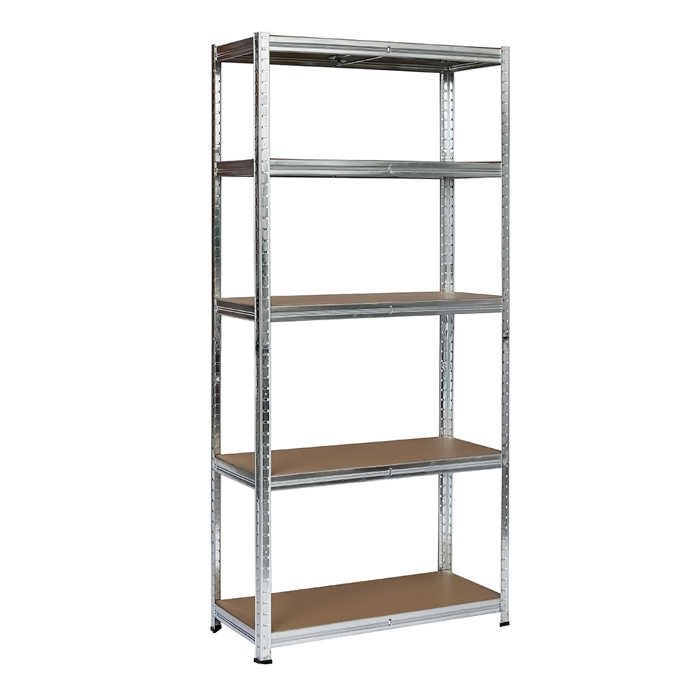 - Regał wyposażony jest w pięć przestronnych półek, których wysokość można dowolnie regulować. Dzięki temu łatwo dopasujesz układ przestrzeni do przechowywanych przedmiotów – niezależnie, czy są to mniejsze narzędzia, czy większe gabaryty.