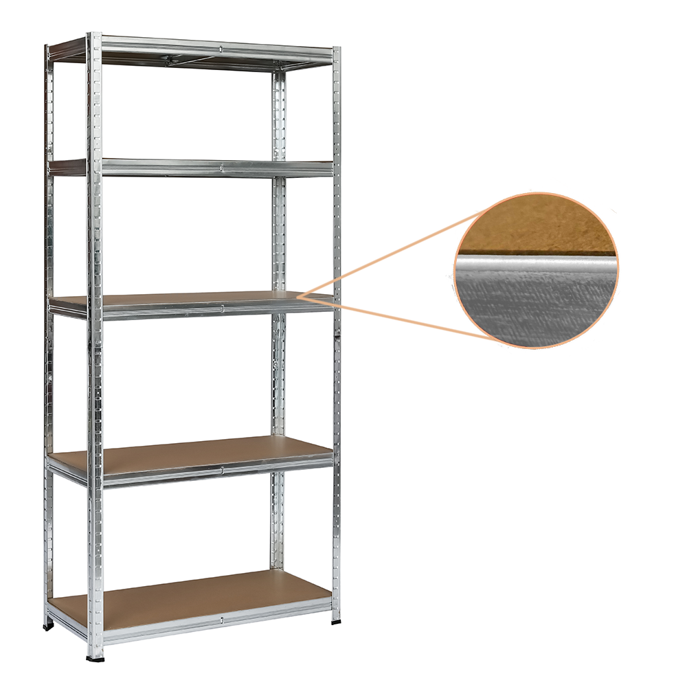 - Regał jest wykonany ze stali ocynkowanej, która skutecznie chroni stalowe elementy przed korozją. Gładkie, starannie wykończone krawędzie minimalizują ryzyko zadrapań i skaleczeń podczas użytkowania czy montażu.