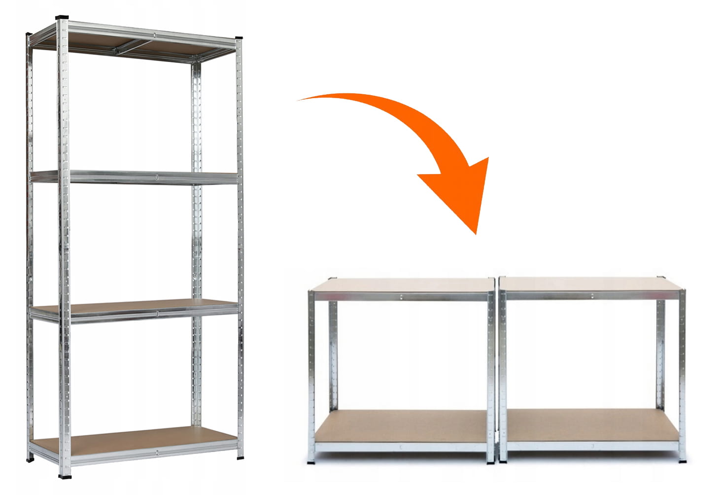 - Regał został zaprojektowany z myślą o maksymalnej funkcjonalności. Może służyć jako klasyczny regał magazynowy lub zostać złożony w formie niskiego stołu roboczego.